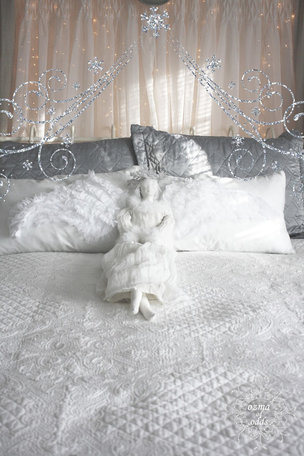 there is even a snow angel upon our bed!